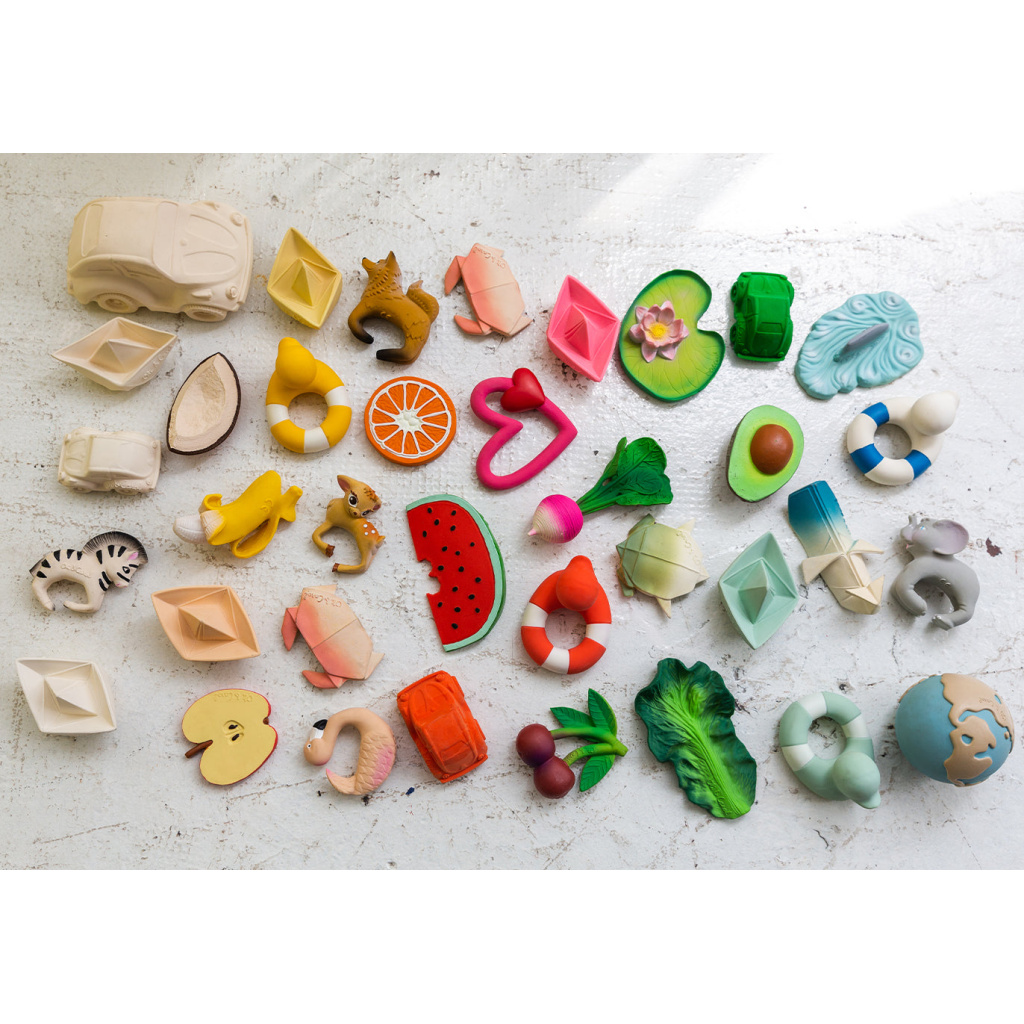 Oli & Carol to młoda hiszpańska marka prosto z wibrującej słońcem, fascynującej Barcelony. To właśnie tam dwie siostry, Olimpia i Carol wpadły na pomysł stworzenia linii kreatywnych i radosnych, a przy tym naturalnych zabawek dla dzieci Oli and Carol, będących zarówno gryzakami, jak i zabawkami kąpielowymi. Najnowsze kolekcje ekologicznych gryzaków Oli and Carol: warzywa i owoce i zabawki do kąpieli Oli and Carol H2Origami od razu stała się hitem na całym świecie. Naturalnie wyglądający banan, arbuz, marchewka, brokuł, jarmuż i awokado nie tylko budują zdrowe przyzwyczajenia żywieniowe od pierwszych dni życia, ale również rozwijają sensorykę i motorykę maluszka.