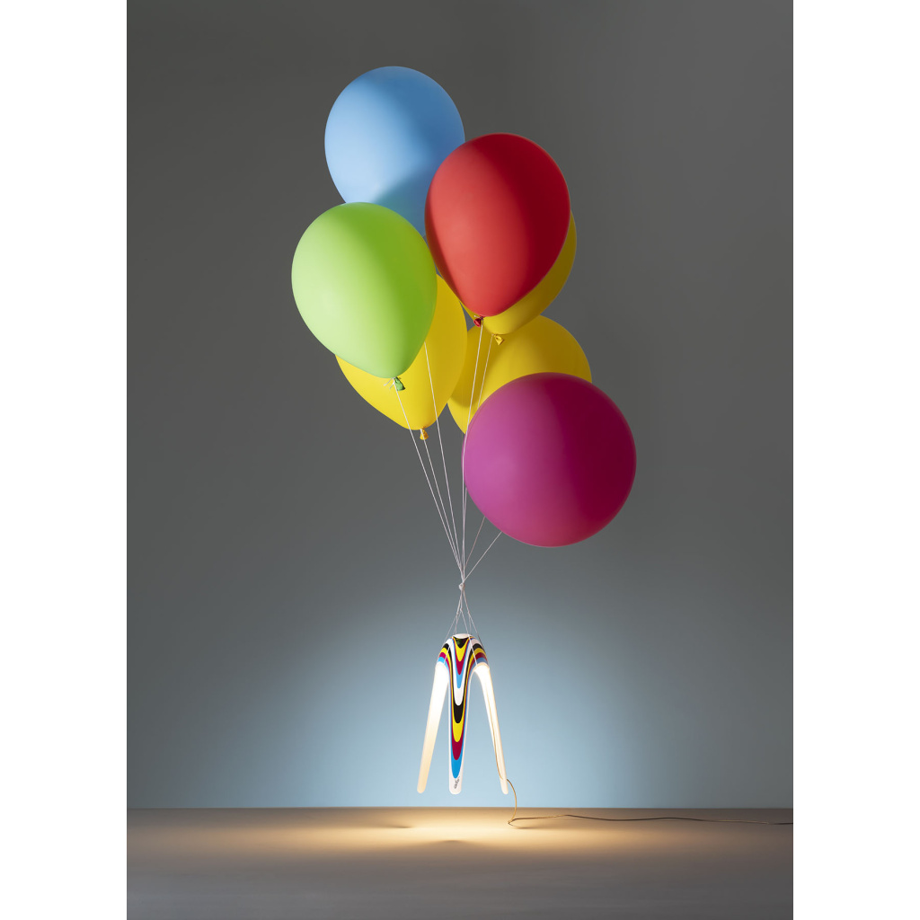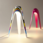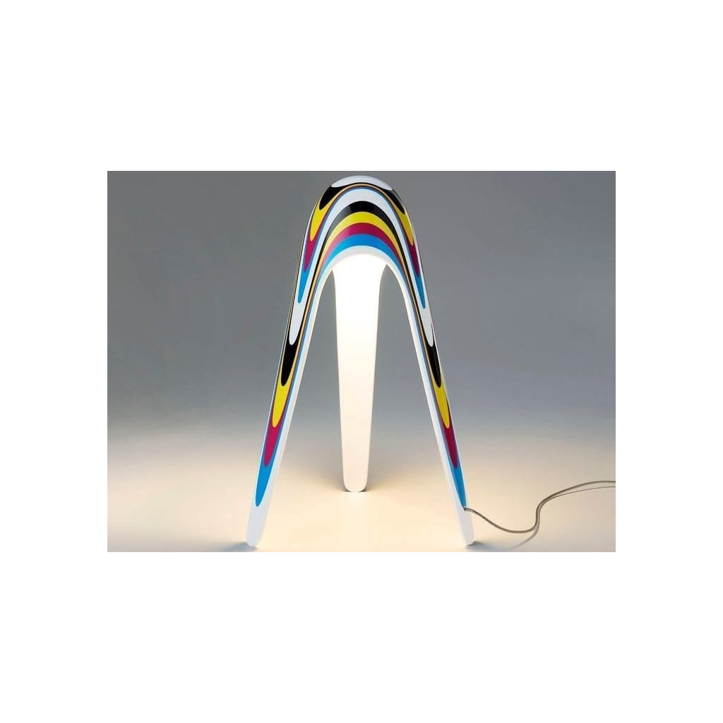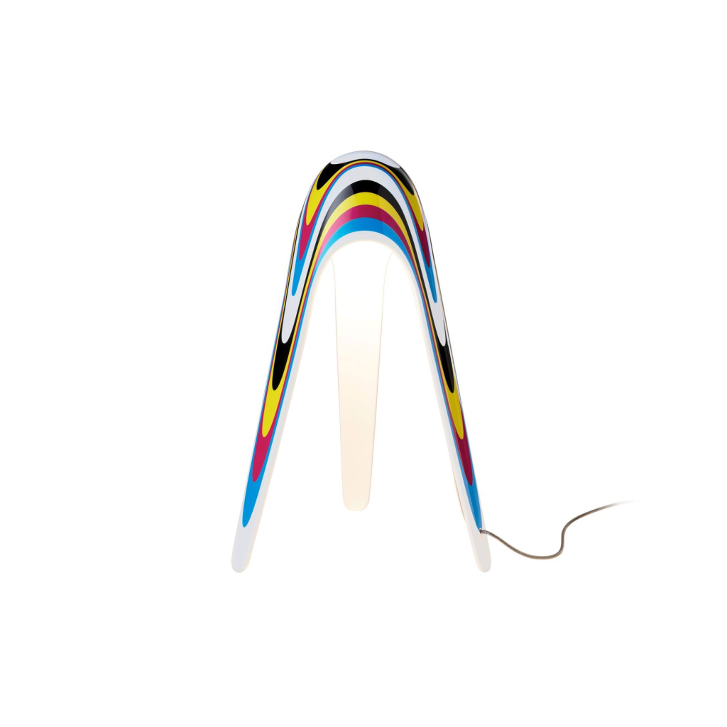 Cyborg texture is a table lamp direct diffused light. A limited edition of 30 signed and numbered pieces of the Cyborg lamp. A playful striped texture in bright colours follows and enhances the shape of the lamp. Structure in painted cast aluminium, internal diffuser in white opal polycarbonate. Integrated LED light source, on/off switch with touch sensor. Electronic plug-in power supply.