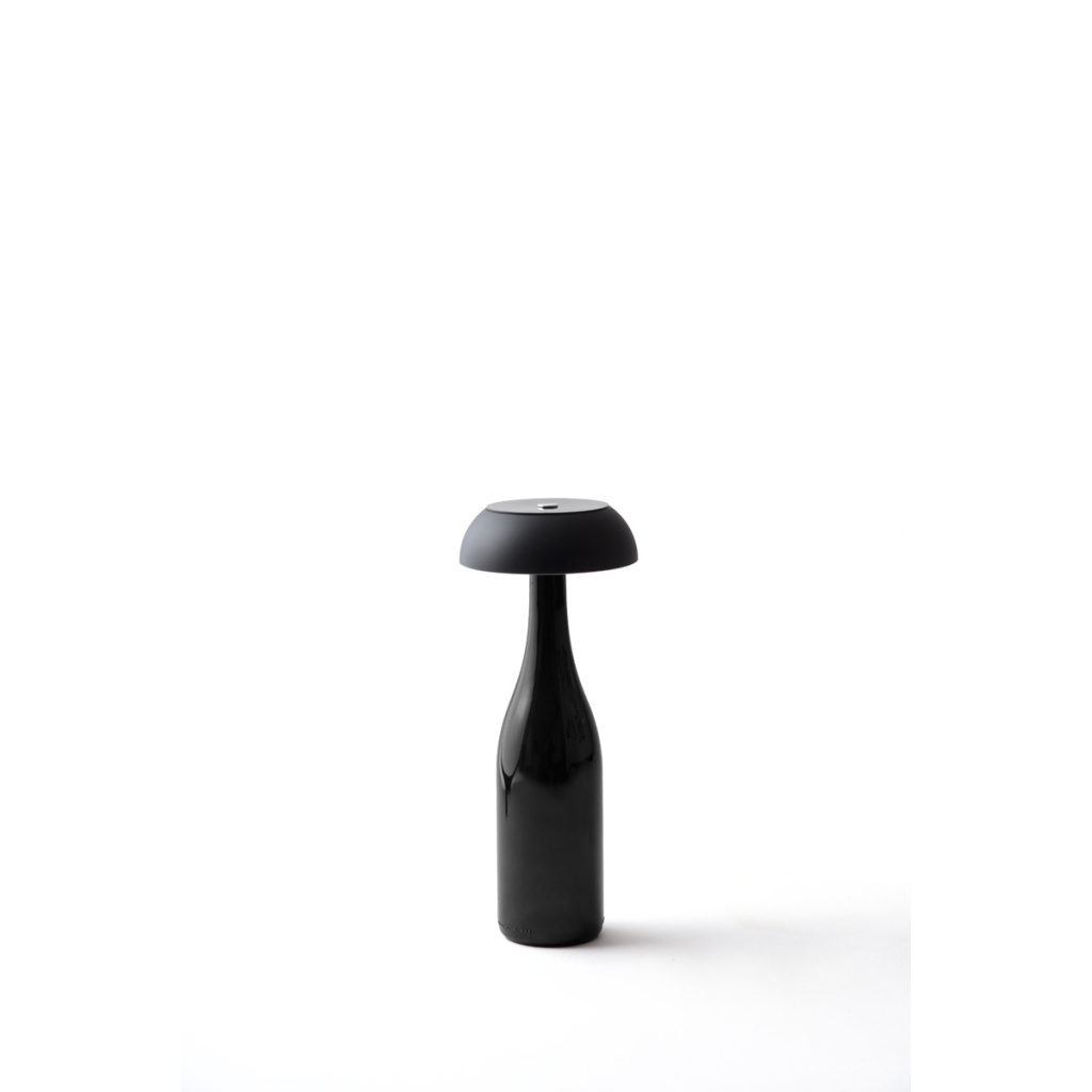 The lamp body, made of aluminum, can be freely placed on any bottle (from small to magnum), thanks to a central hole closed in the upper end.