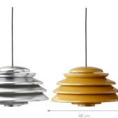 Pendant with direct downward light and layered shades diffusing the light throughout the surroundings. Panton was known for his skillful play with basic geometric forms, figures and systems - often drawing inspiration from organic silhouettes found in nature, and the Hive pendant is no exception. Made from multiple concentric shades of varying size, the layered design of the pendant offers a very characteristic and sculptural quality while ensuring a 100% glare-free light.