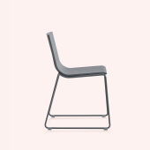 This is the version with runner legs. Its simple, austere look means it can be fitted in with all kinds of decorative options. That’s why Vent is so versatile as an additional piece that can be combined with dining tables in all sorts of different styles. This product is highly weather resistant, as the seat and back are made from one single piece of rigid polyurethane and the legs are steel tubes.