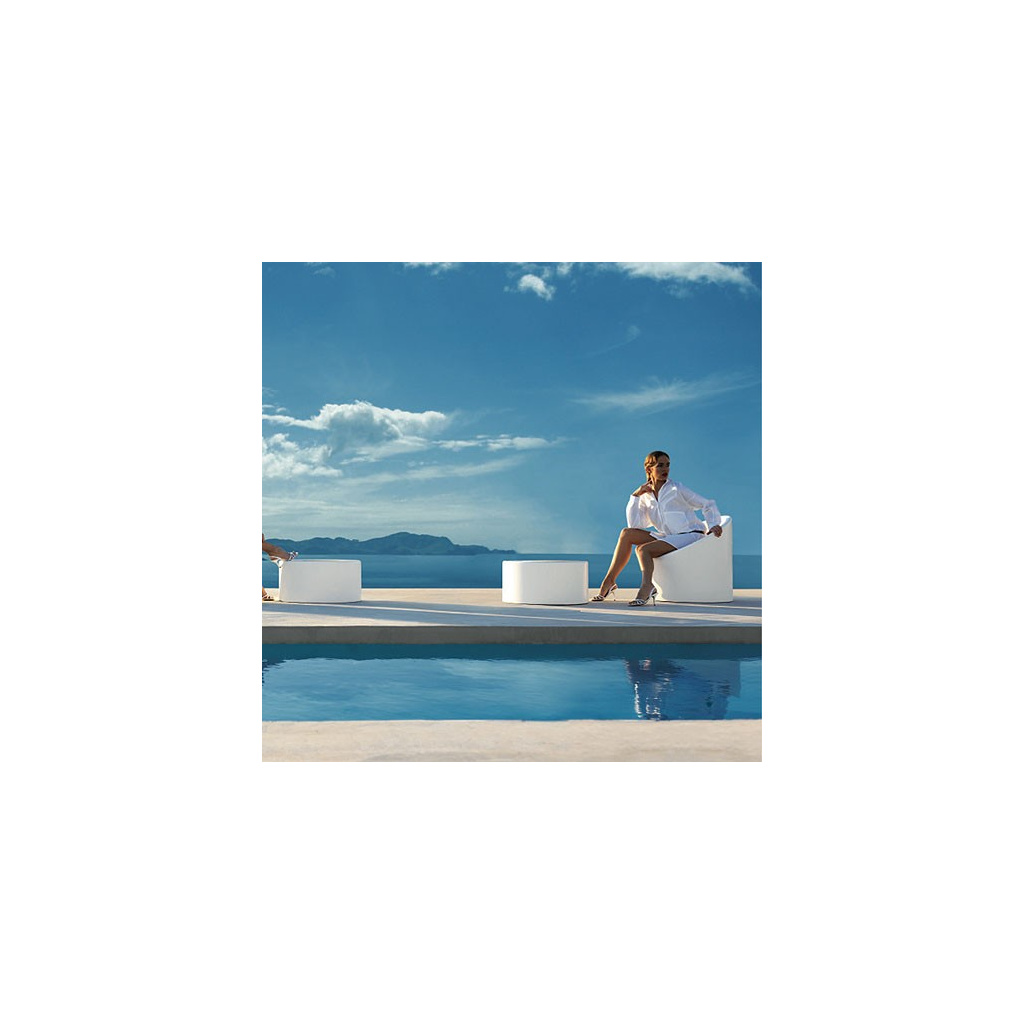 The Lipstick collection is perfect for creating a relaxed area in which to have a drink. It also adapts to all kinds of terrain, as it is made from polyethylene (100% recyclable).