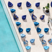 As a tribute to the bean bag cushions that were invented in the 1970s, the designer Héctor Serrano has come up with his own version using just two pieces of fabric and a triangular pattern. The upholstery of Sail uses special outdoor fabrics and several designs are available. What’s more, the cover can be taken off for easy washing. The Sail outdoor chair also has a matching pouffe that can be used as a footrest.