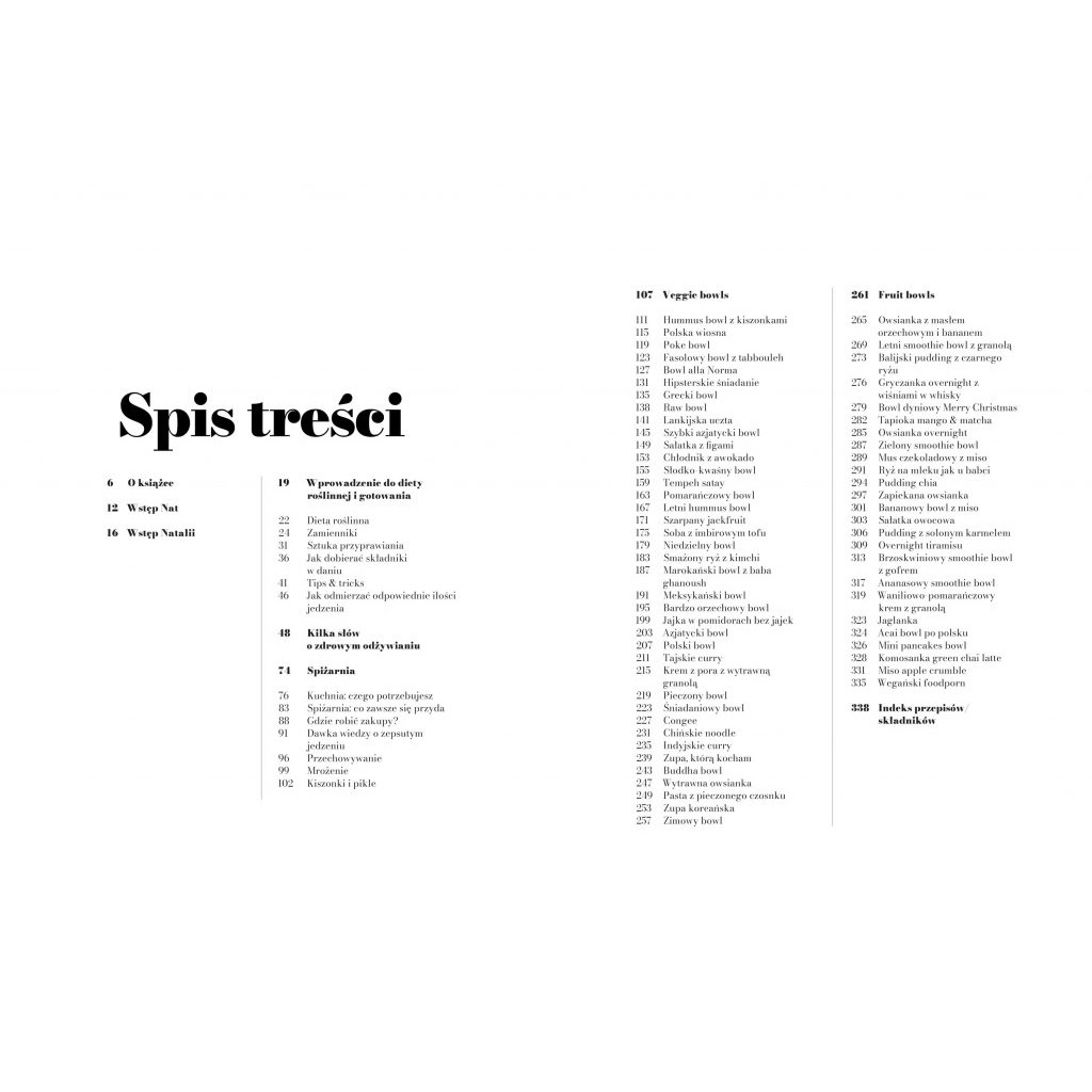 The Bowl Book powstał z połączenia naszych pasji do zdrowego i szybkiego roślinnego gotowania oraz pięknie wydanych albumów. Dzielimy się w nim naszymi doświadczeniami, praktyczną wiedzą i ciekawostkami. Napisałyśmy tak na prawdę książkę, jakiej nam brakowało, gdy zaczynałyśmy przygodę z weganizmem. Osobiście zadbałyśmy o każdy detal i dzięki pracy wielu kobiet zaangażowanych w ten projekt powstała wyjątkowa publikacja zilustrowana apetycznymi fotografiami Nat.