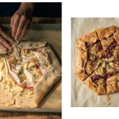 lato: makaron z cukinią, galette z ratatouille i parowany biszkopt z morelami