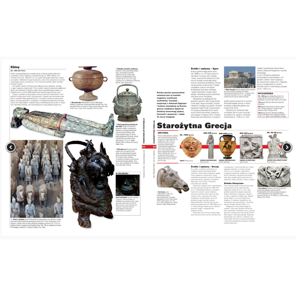 Każdy styl czy kierunek artystyczny - od włoskiego renesansu, przez impresjonizm, po sztukę graffiti - jest dokładnie wyjaśniony. Omówione są jego źródła i wpływy, cechy charakterystyczne, najpopularniejsze techniki oraz typowe tematy. Wykres chronologiczny z zaznaczonymi na nim najważniejszymi dziełami obrazuje zasięg każdego z głównych kierunków.