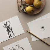 The art postcard FOREST FRIENDS includes six different postcards with animal illustrations. Motifs are Raven, Hare, Roe Deer, Fox, Lynx and Elk.