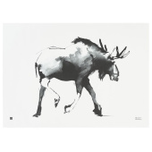 Poster łoś Teemu Jarvi 50x70 ELK. The Elk is an ancient theme in nature art. The black and white poster has a natural, classic Scandinavian feeling to it. Hang your Elk poster in the living room, summer cottage or give it as a present. The sight of an Elk, the lord of the northern woods, is always a magnificent experience.