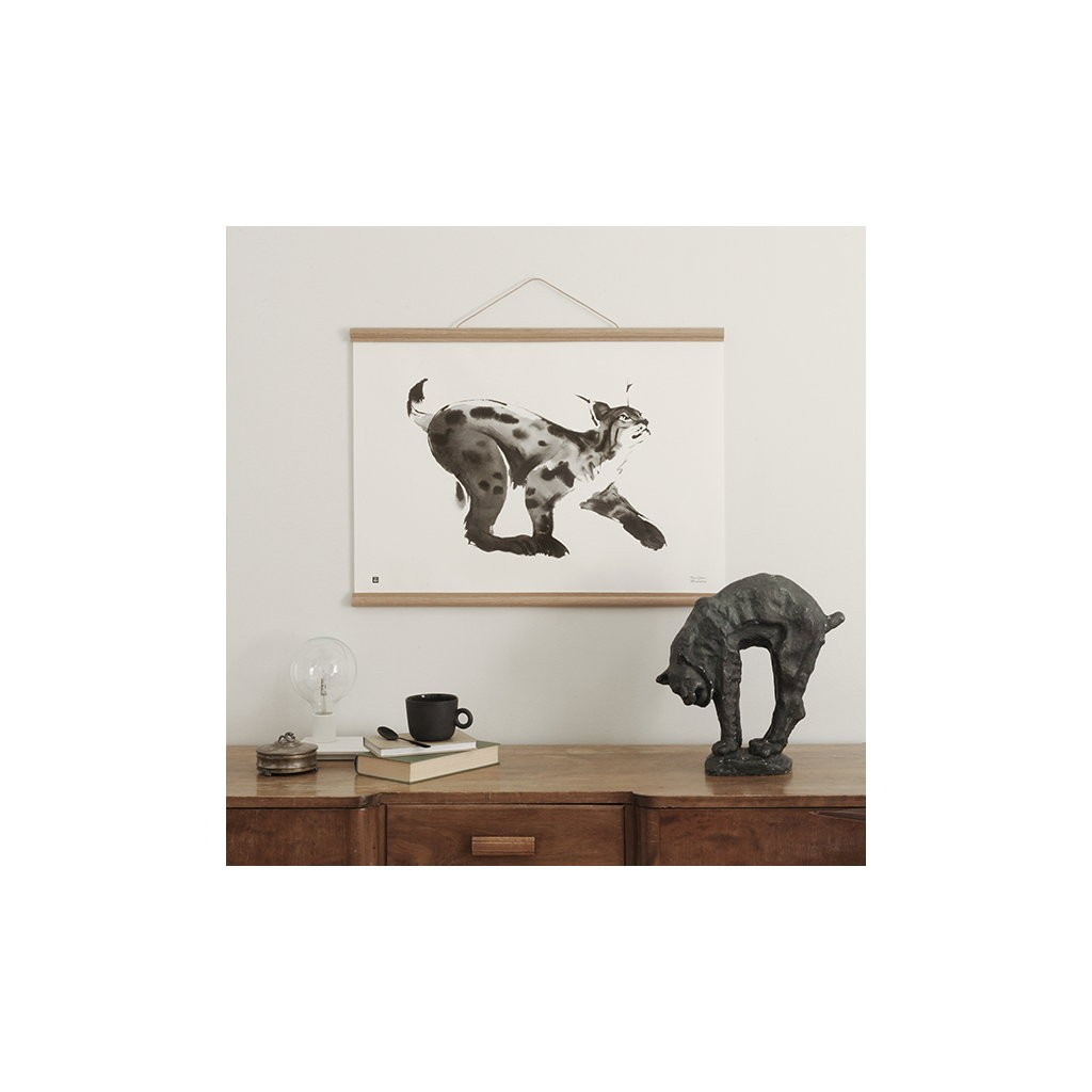 Poster ryś Teemu Jarvi 50x70 LYNX. The Lynx art print features one of the most enigmatic creatures of the Northern wilderness. The black and white Lynx poster has a minimalistic yet wild feeling to it. The Lynx is a nocturnal animal that few people get to see in nature.