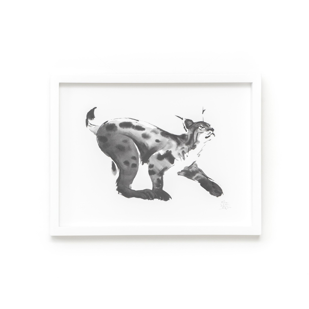 The Lynx art print features one of the most enigmatic creatures of the Northern wilderness. The black and white Lynx poster has a minimalistic yet wild feeling to it. The Lynx is a nocturnal animal that few people get to see in nature. In European and North American mythology it is considered a mysterious creature that has psychic powers and is capable of seeing hidden truths. I find the Lynx to be an elegant-looking predator, one of the most fascinating wild cats.