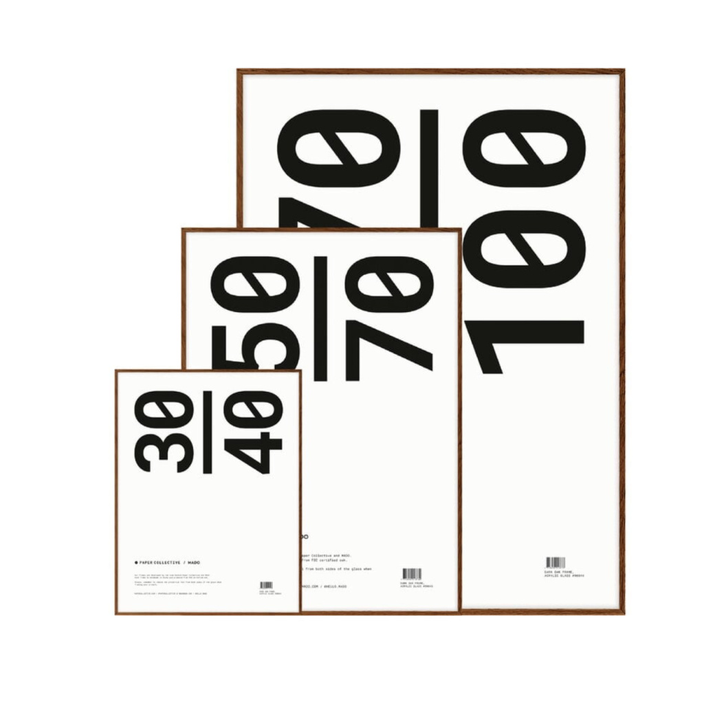 Ready-made frame in solid oak (FSC certified) with polystyrene (plexi) glass that looks like regular glass, but makes it great for shipping without any damages. Remember to remove the protective film of the glass when framing your artwork.