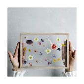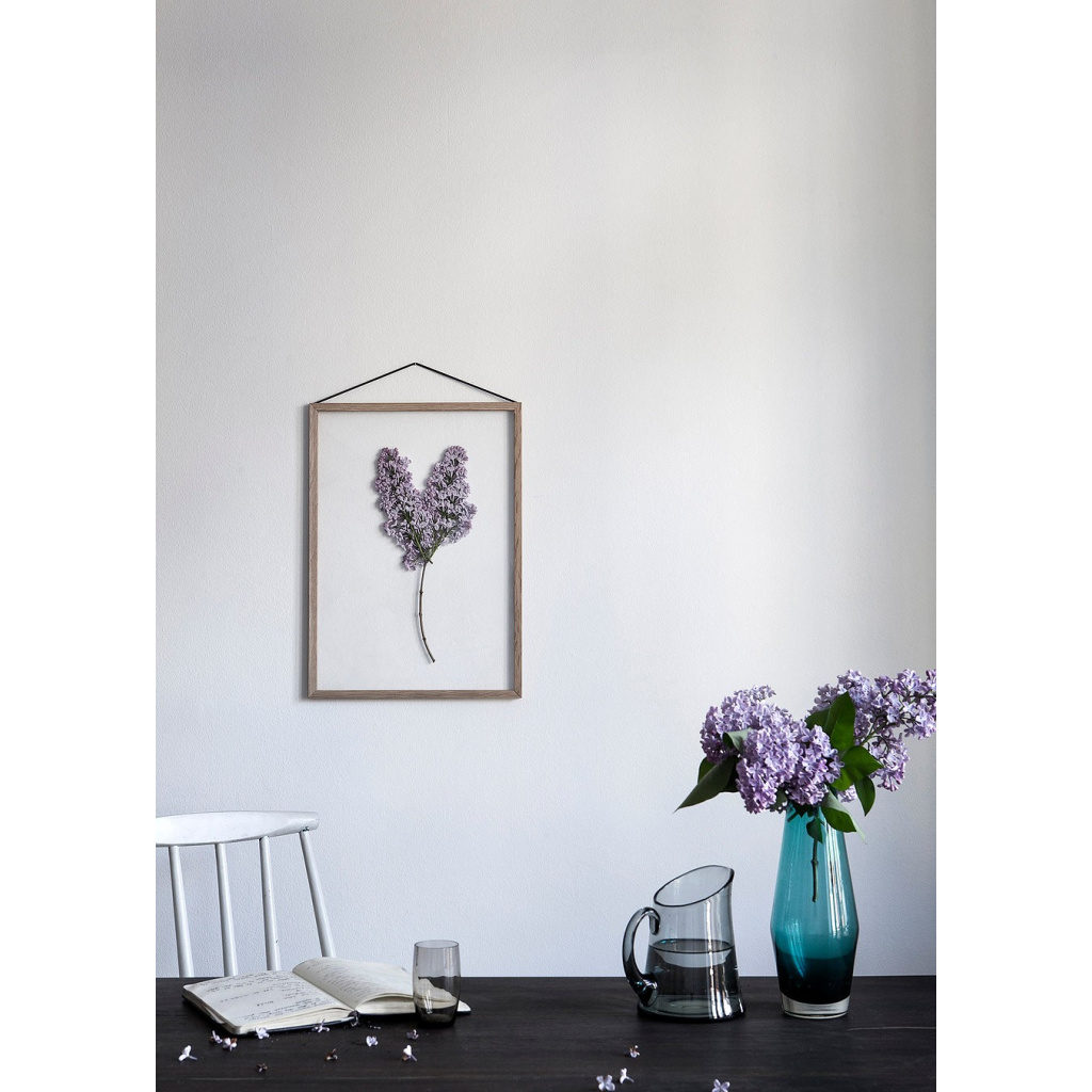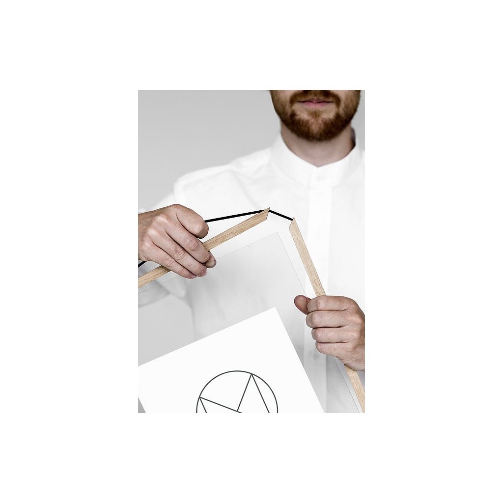 FRAME consists of two pieces of acrylic glass, four lists made of either oak or aluminium and a rubber band.