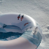 Bądź gotowy na zimowe szaleństwo z kołem do jazdy po śniegu The Nice Fleet! Nadmuchiwane koło o średnicy 1,1 m ozdobione zostało dwustronnym drukiem ze specjalnie zaprojektowanymi, niebanalnymi wzorami!