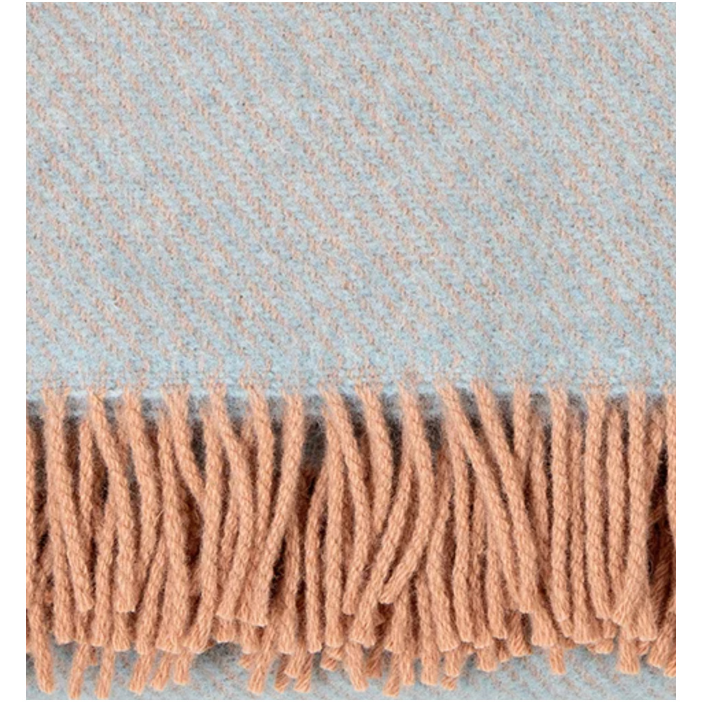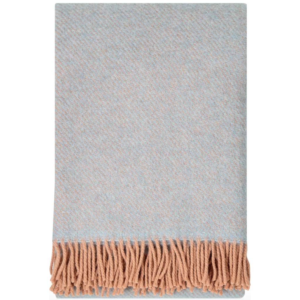 Koc wełniany z frędzlami 130x200 ILO Wool Blanket - Powder-Light Blue