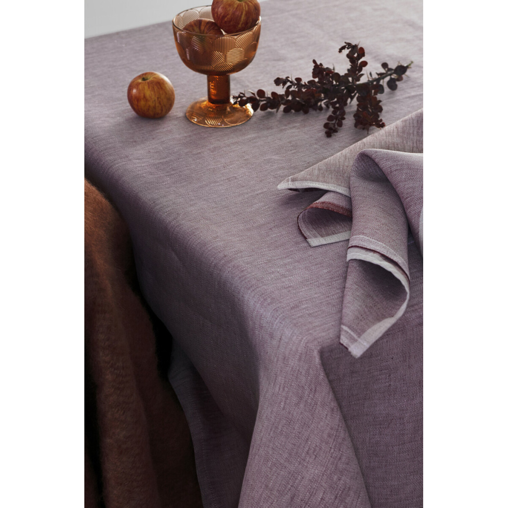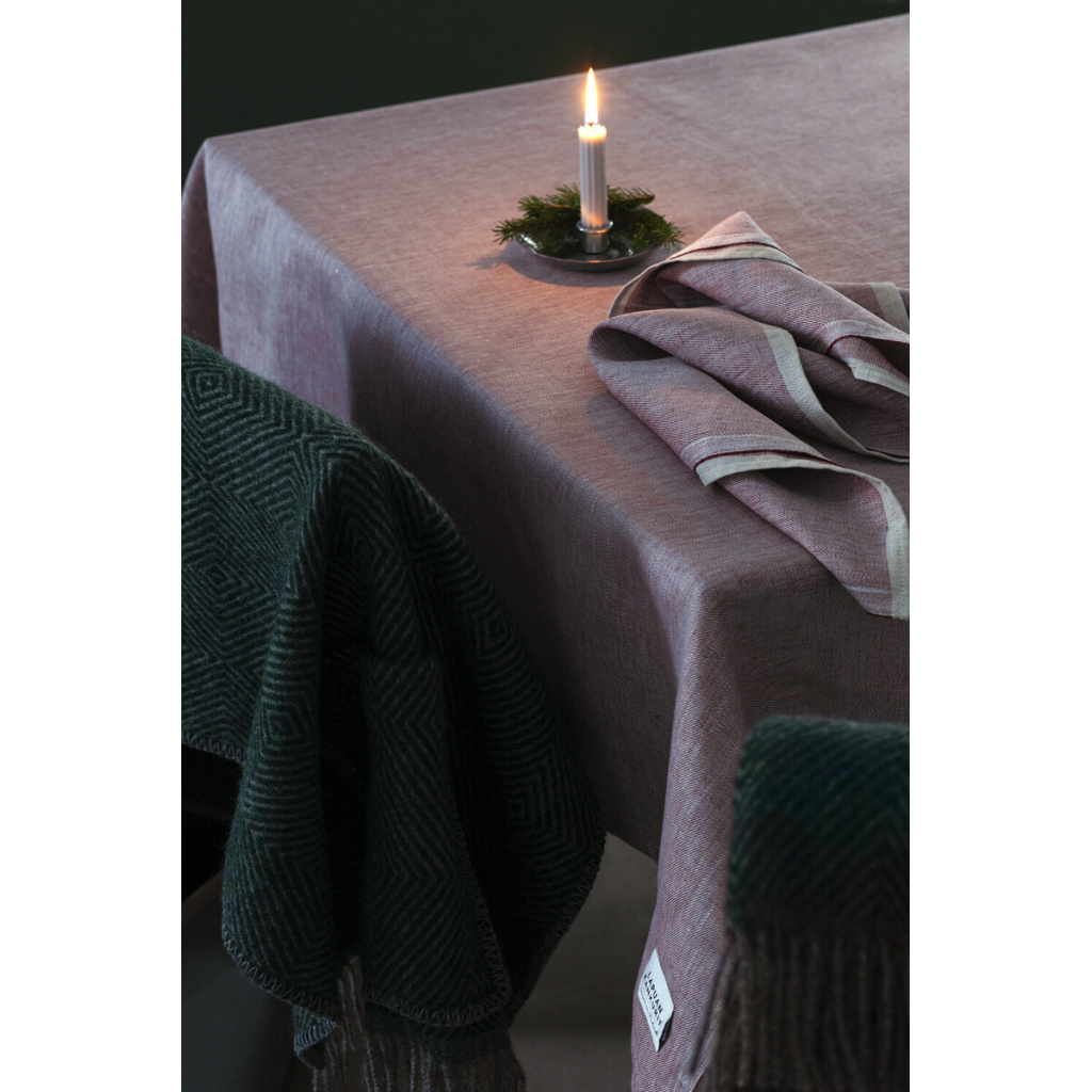 Obrus lniany AAMU 150x260 White-Bordeaux. Beautiful linen tablecloth woven in Finland from 100% european linen yarn.