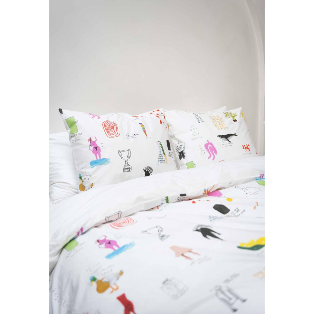 Artist Rogier Roeters excels in catching the spirit of the times and universal emotions in his drawings. His work is raw, confronting, moving and hilarious. Snurk is proud that we were allowed to make a unique selection from his work for our bedding. Art does not always have to hang on the wall!
