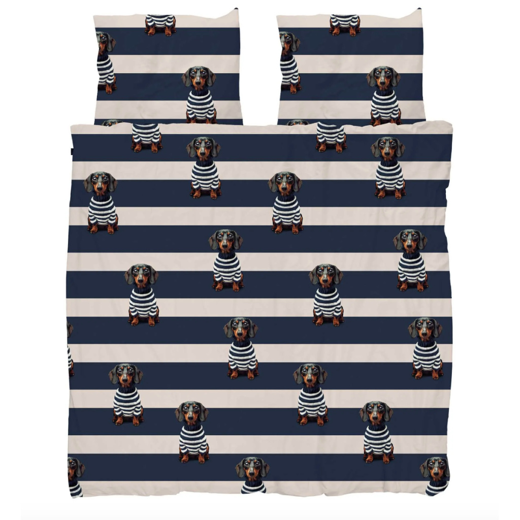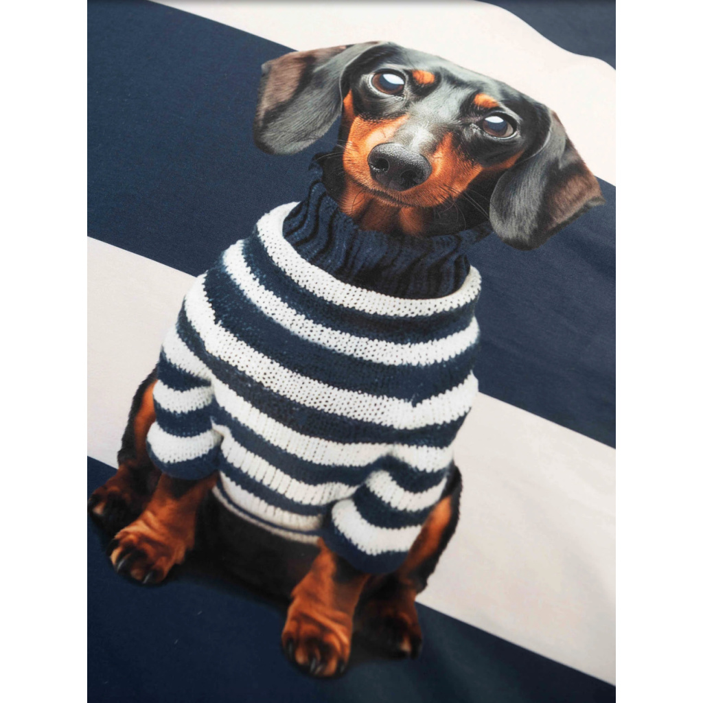 Every evening he is faithfully waiting for you: Pierre, Our stylish dachshund in its classic Breton sweater. Whether you need a hug, a lazy weekend or just a stylish night: Pierre Is there for you. Always in for a good nap, preferably together. Made from soft organic cotton.