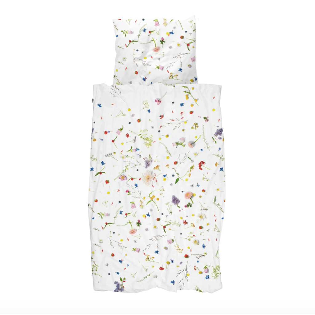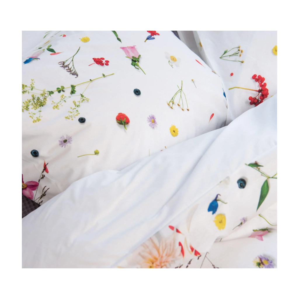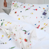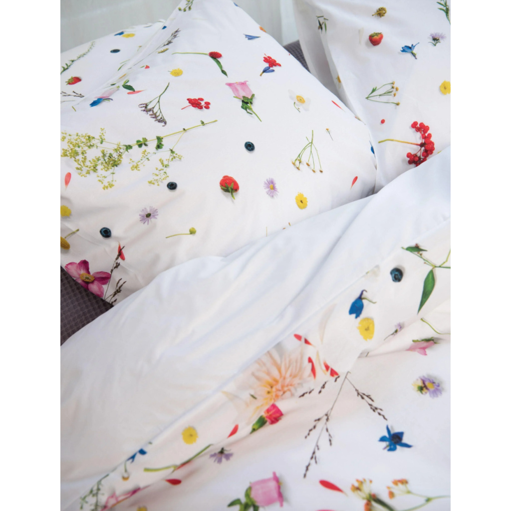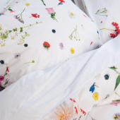Duvets with floral prints, there are already many of them. But no one was so fresh and so realistic. As if the wild flowers, herbs and fruits are really on your bed. You would almost get hay fever.