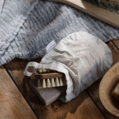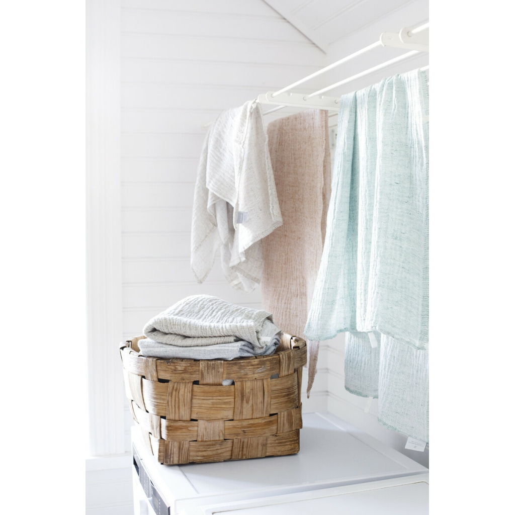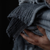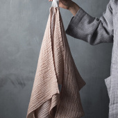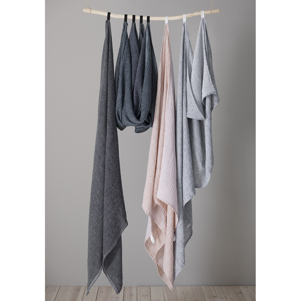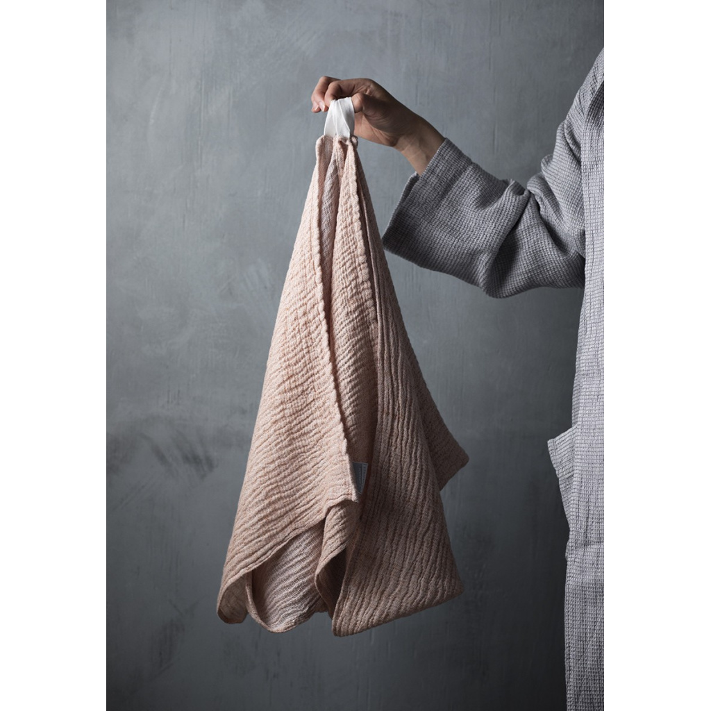 Let us introduce you to our new light weight travel companion, NYYTTI (bundle) towel. We compined the brilliant design by Elina Airikkala with our well-tried material compination of linen-tencel-cotton (best known from our TERVA series) and ended up with towels that cherish the sensitivity of your skin, settling down your shoulders like a haze.