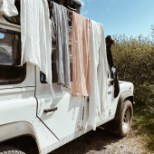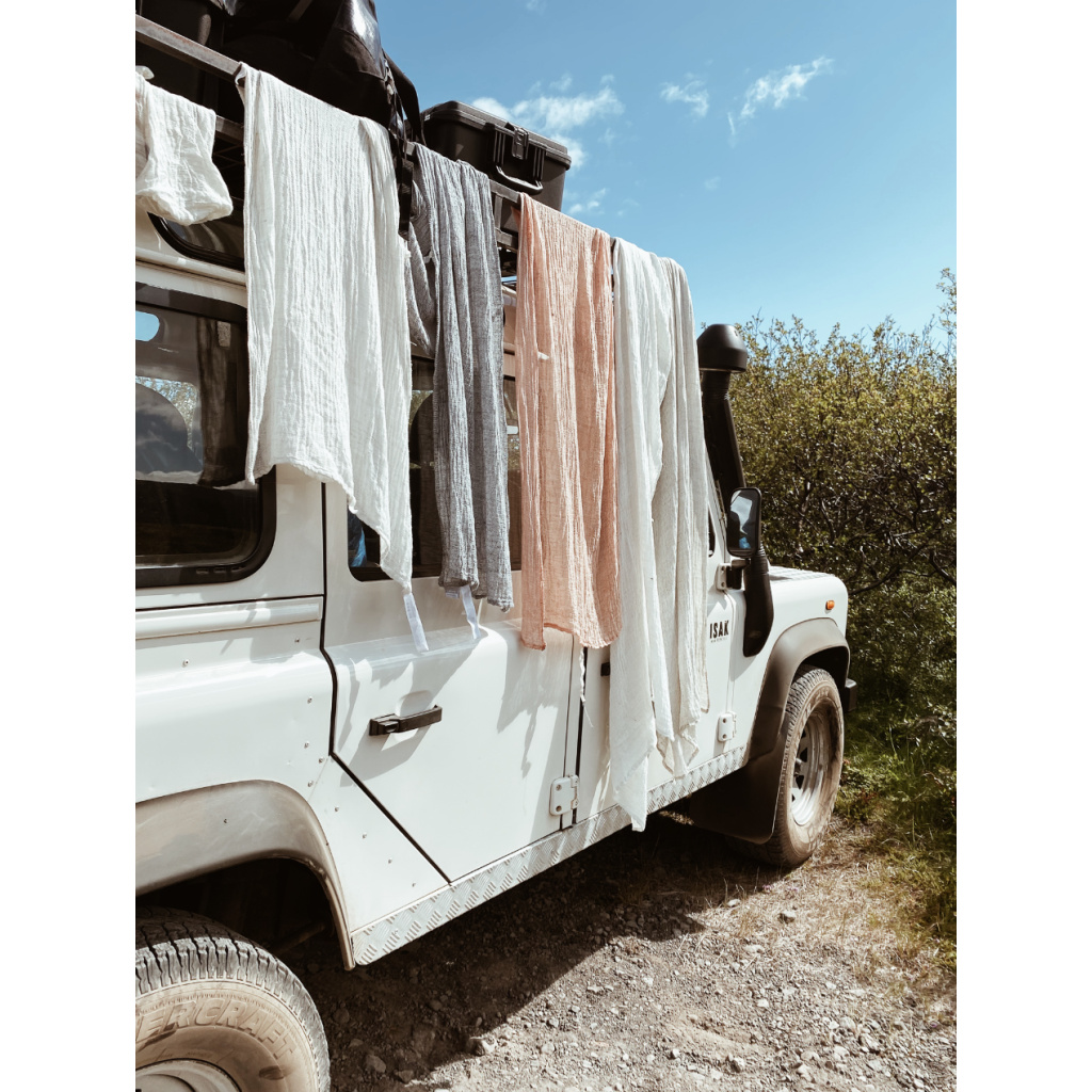 Let us introduce you to our new light weight travel companion, NYYTTI (bundle) towel. We compined the brilliant design by Elina Airikkala with our well-tried material compination of linen-tencel-cotton (best known from our TERVA series) and ended up with towels that cherish the sensitivity of your skin, settling down your shoulders like a haze.