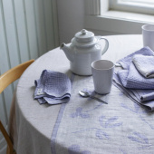 Made out of 100% Masters of Linen long staple linen yarn, grown and spun in Europe according Öko-Tex standard. Yarns are dyed in Europe, mainly in Finland. Product development and design, material purchasing, bindings of the fabric and programming of the jacquard machine is done in own weaving mill in Finland. Warping, preparing, weaving, finishing, drying and fabric inspection is done in own weaving mill in Finland. Sewing in own daughter sewing company in Lithuania or in subsidiaries located nearby the weaving mill in Finland. Accessories come from Europe, mainly from Finland. Main part of production is made in Finland. Country of origin is Finland.
