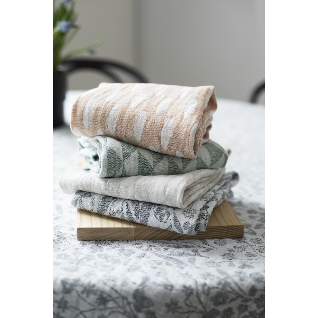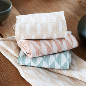 Ścierka kuchenna HELMI 48x70 Złota. Made out of 100% Masters of Linen long staple linen yarn, grown and spun in Europe according Öko-Tex standard. Yarns are dyed in Europe, mainly in Finland. Product development and design, material purchasing, bindings of the fabric and programming of the jacquard machine is done in own weaving mill in Finland. Warping, preparing, weaving, finishing, drying and fabric inspection is done in own weaving mill in Finland. Sewing in own daughter sewing company in Lithuania or in subsidiaries located nearby the weaving mill in Finland. Accessories come from Europe, mainly from Finland. Main part of production is made in Finland. Country of origin is Finland.