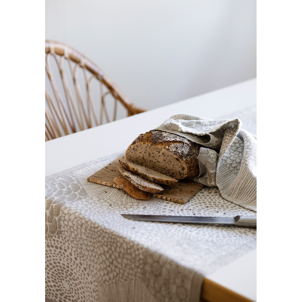 Ścierka kuchenna RUUT 48x70 Aspen Green. Made out of Masters of Linen long staple linen yarn, grown and spun in Europe and out of bio organic cotton spun in Europe according Öko-Tex standard. Yarns are dyed in Europe, mainly in Finland nearby the weaving mill. Product development and design, material purchasing, bindings of the fabric and programming of the jacquard machine is done in own weaving mill in Finland. Warping, preparing, weaving, finishing, drying and fabric inspection is done in own weaving mill in Finland. Sewing in own daughter sewing company in Lithuania or in subsidiaries located nearby the weaving mill in Finland. Accessories come from Europe, mainly from Finland. Main part of production is made in Finland. Country of origin is Finland.