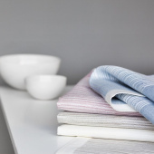 Made out of Masters of Linen long staple linen yarn, grown and spun in Europe and out of tencel-cotton yarn according Öko-Tex standard. Yarns are dyed in Europe, mainly in Finland nearby the weaving mill.