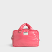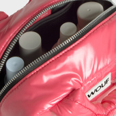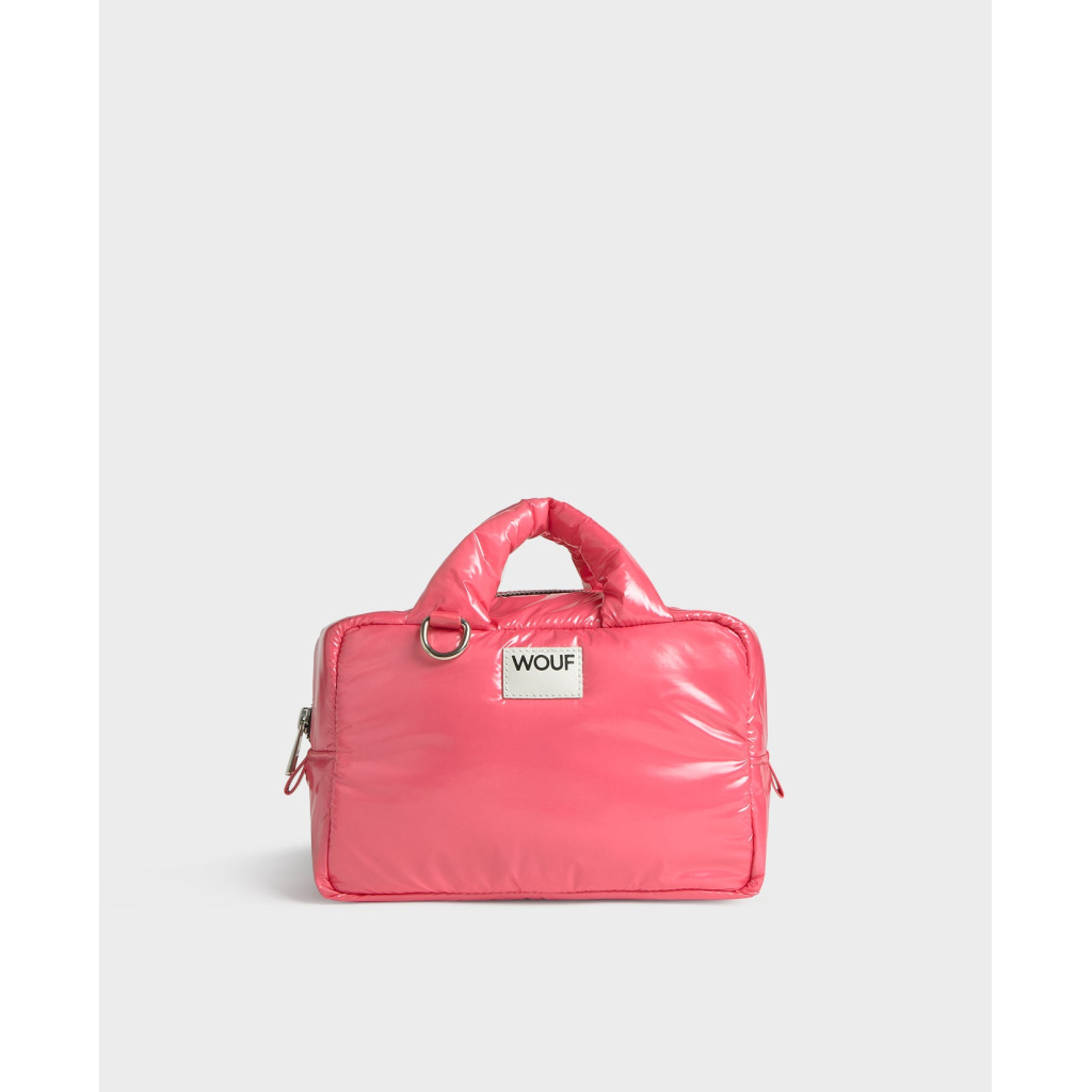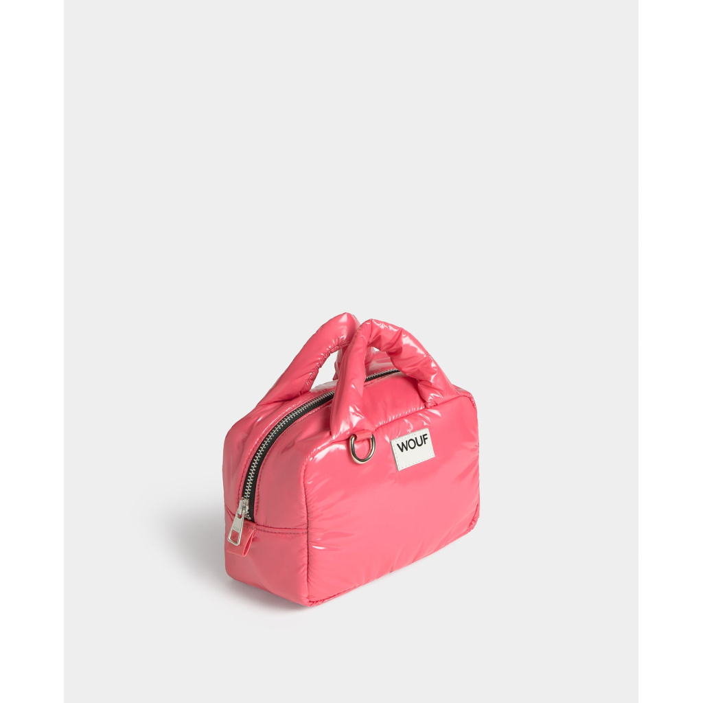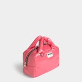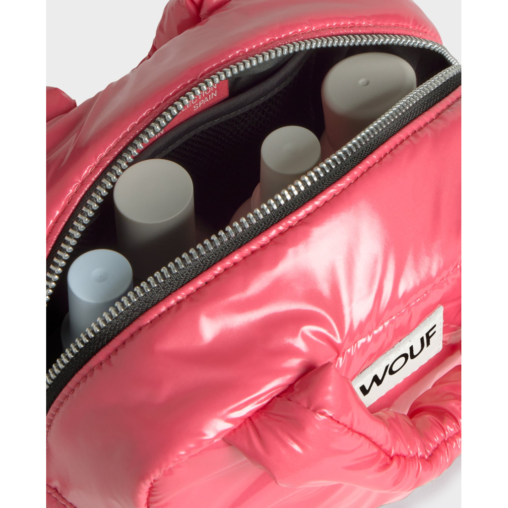 The Candy toiletry bag, made from 100% recycled fabrics, is designed to carry your personal care items with a shiny finish. It features a water-repellent surface, a main zipped compartment, an inner pocket, and two top handles for easy organisation and transport.