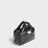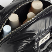 The Candy toiletry bag, made from 100% recycled fabrics, is designed to carry your personal care items with a shiny finish. It features a water-repellent surface, a main zipped compartment, an inner pocket, and two top handles for easy organisation and transport.