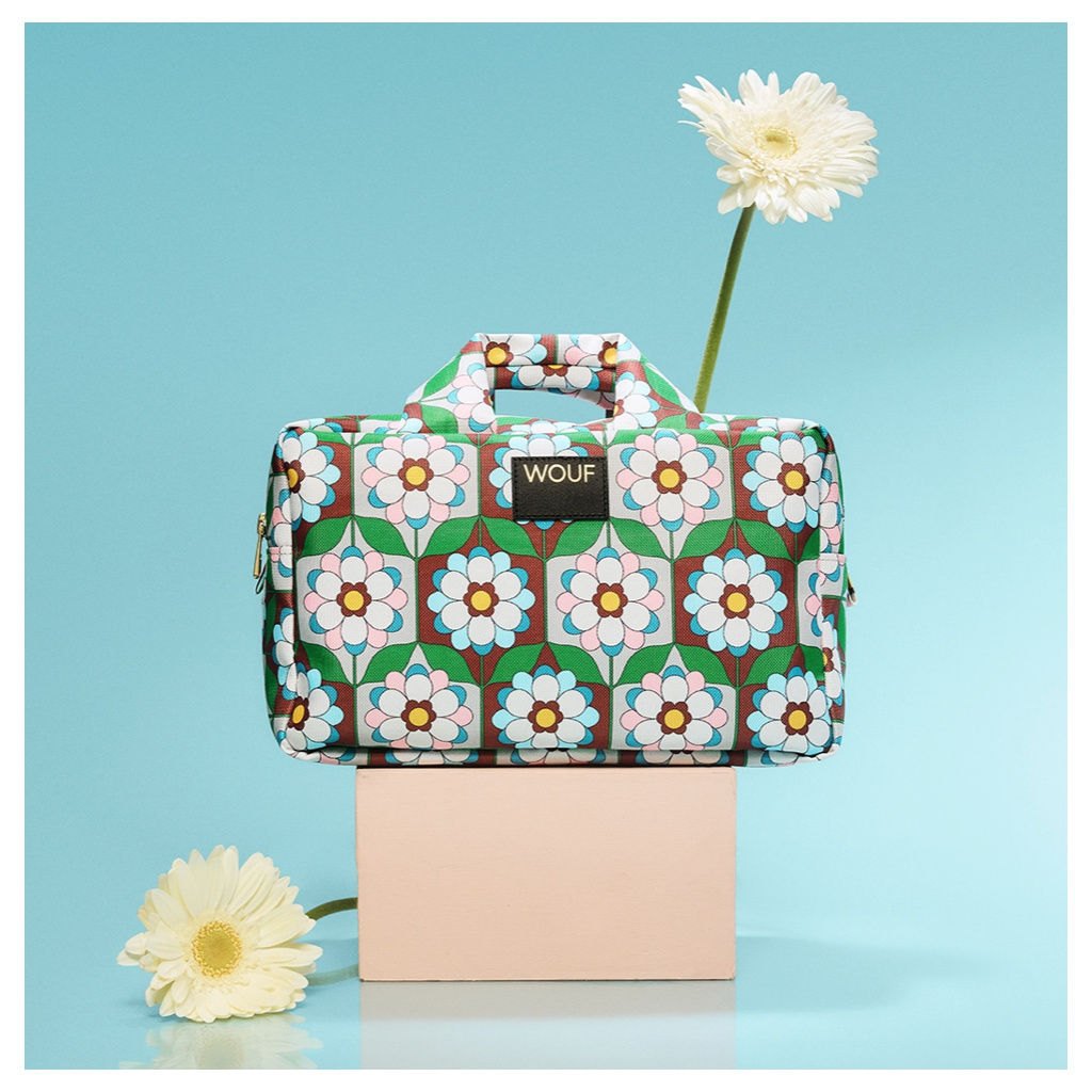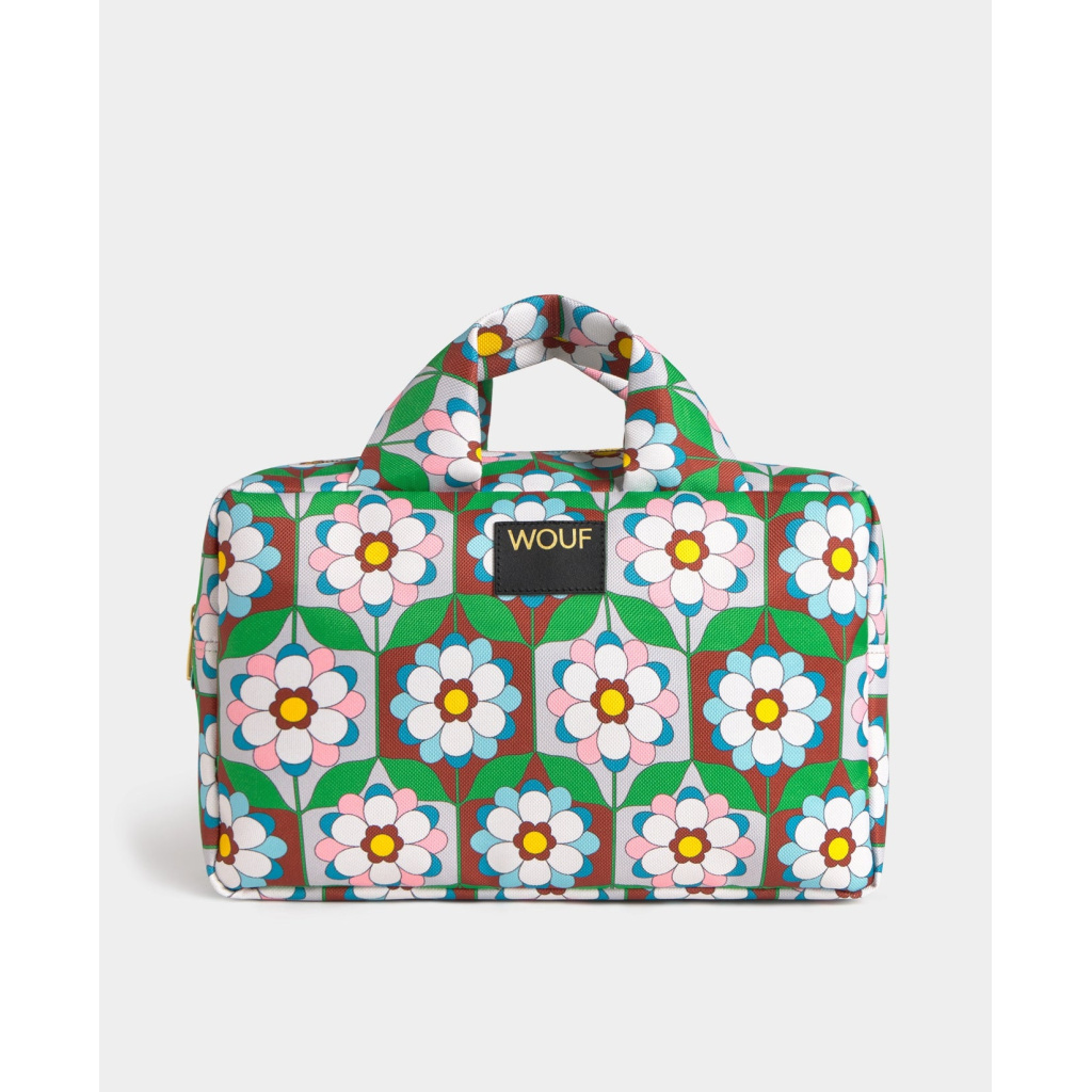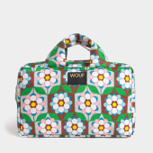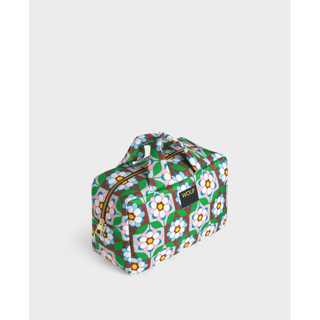 The Kaleido Large toiletry bag, made from 100% recycled fabrics, is ideal for carrying cosmetics, makeup, and toiletries. It features a water-repellent finish and has one main compartment and two inside pockets, perfect for organising and carrying essential toiletry items.