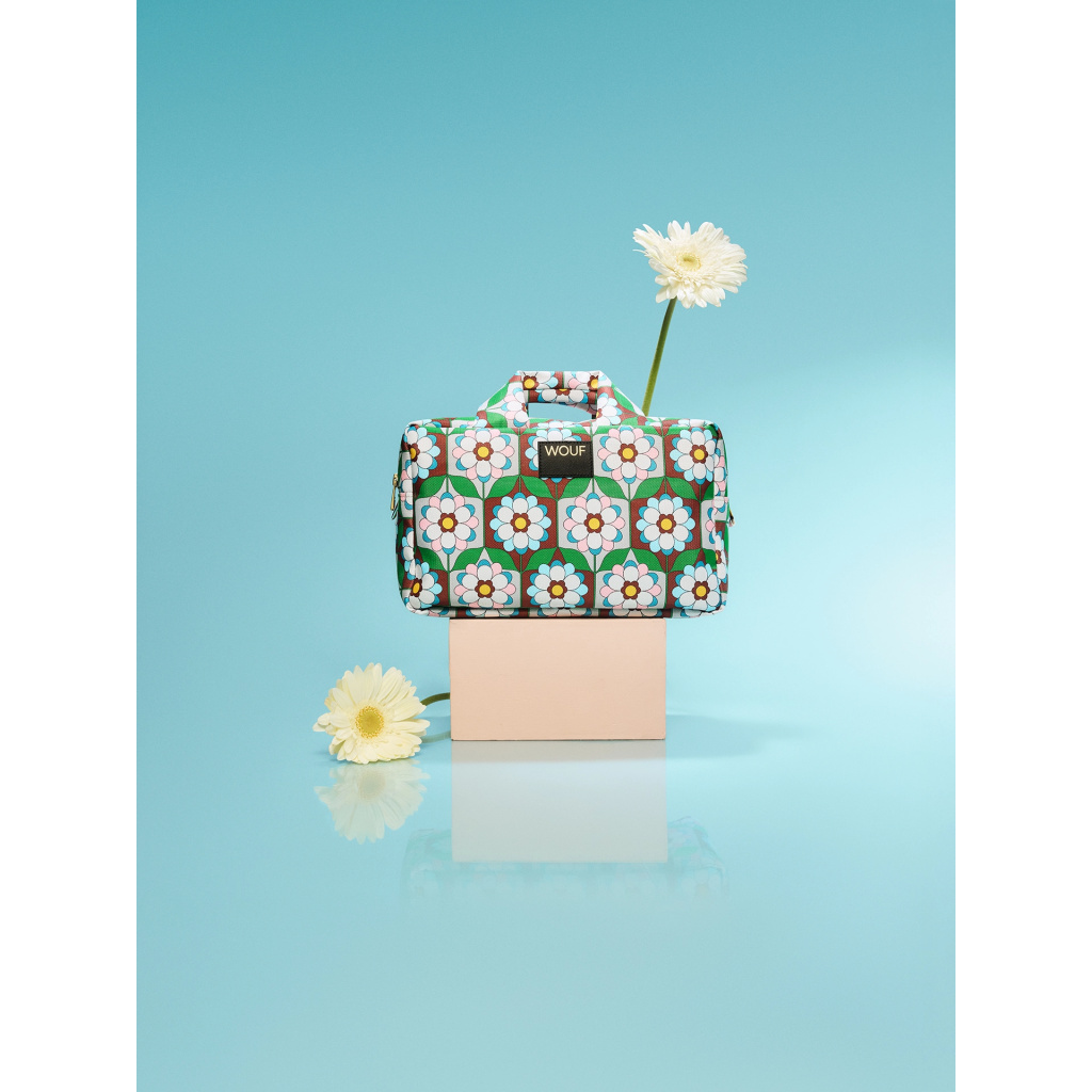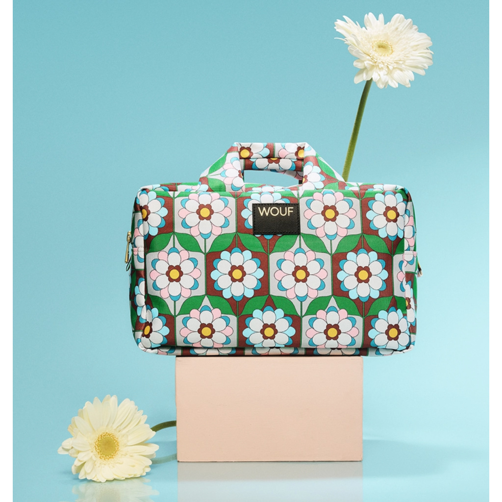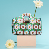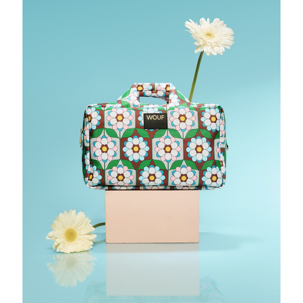 The Kaleido Large toiletry bag, made from 100% recycled fabrics, is ideal for carrying cosmetics, makeup, and toiletries. It features a water-repellent finish and has one main compartment and two inside pockets, perfect for organising and carrying essential toiletry items.