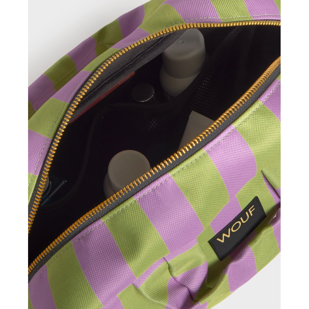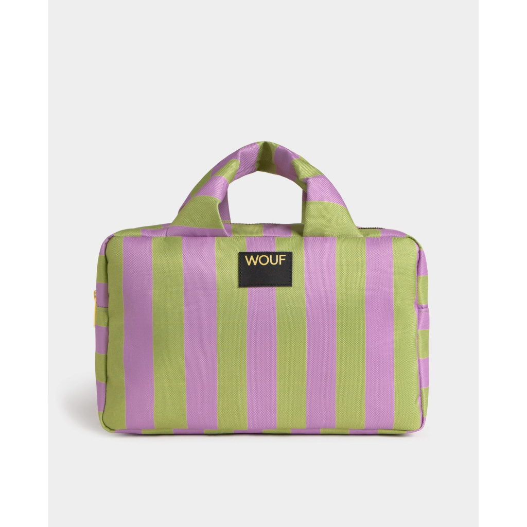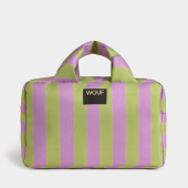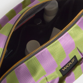 The Riviera Large toiletry bag, made from 100% recycled fabrics, is ideal for carrying cosmetics, makeup, and toiletries. It features a water-repellent finish and has one main compartment and two inside pockets, perfect for organising and carrying essential toiletry items.